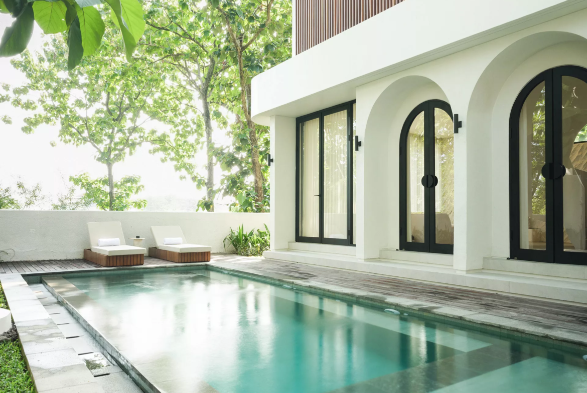 The open-plan layout seamlessly connects indoor and outdoor living spaces, creating a relaxed yet sophisticated atmosphere perfect for entertaining or enjoying a tranquil lifestyle in Bali’s Bukit Peninsula.
