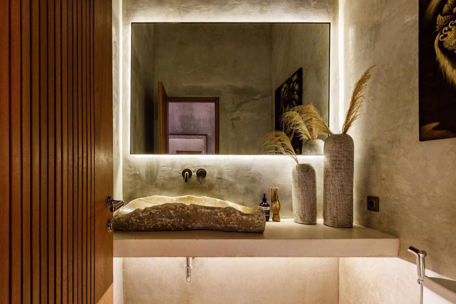 - Natural materials: wood, stone, bamboo