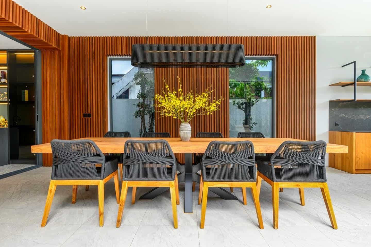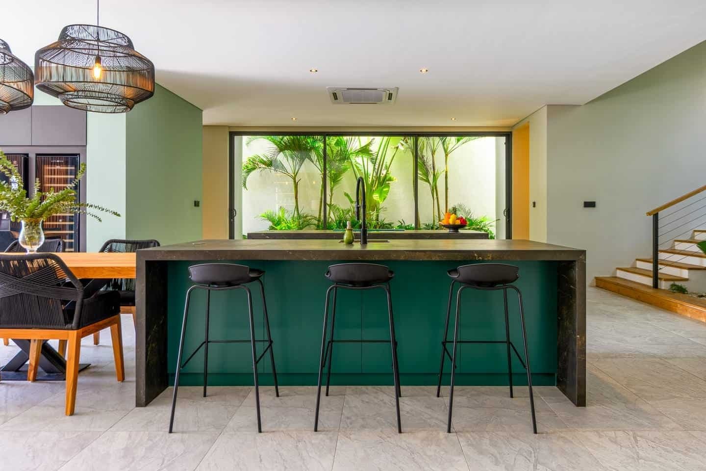Spanning 674 sqm of building on 500 sqm of land, the villa is fully furnished and thoughtfully designed to maximize space, light, and views. The second floor features an open-plan kitchen seamlessly connected to the dining and living areas, enhanced by high ceilings and expansive windows that create a bright, airy atmosphere. A private office and home gym add practicality for modern living.